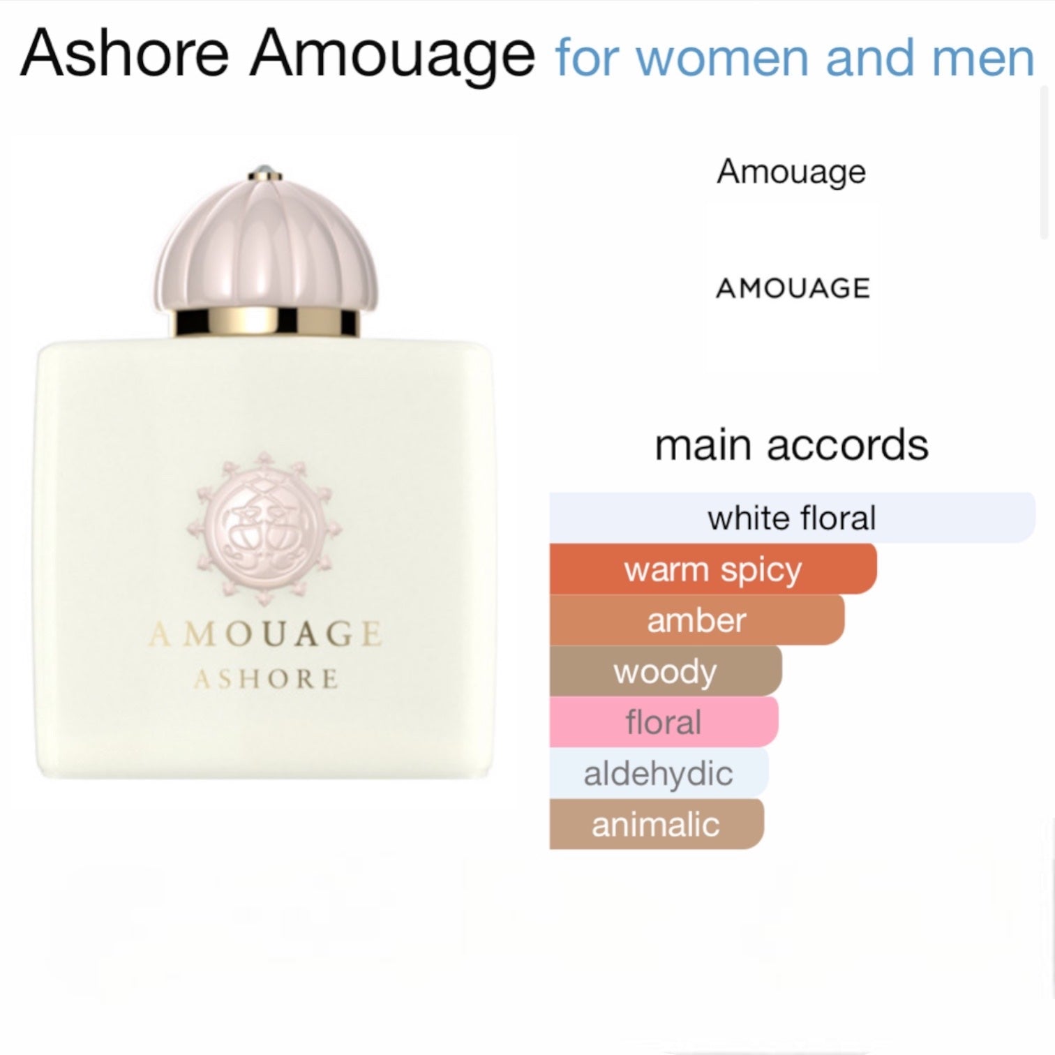 Ashore by Amouage is a Amber Floral fragrance for women and men. This is a new fragrance. Ashorewas launched in 2020. The nose behind this fragrance is Mackenzie Reilly. Top notes are Pink Pepper, Cardamom and Turmeric; middle notes are Jasmine Sambac, Solar Notes and Rose; base notes are Ambergris, Sandalwood and Olibanum.