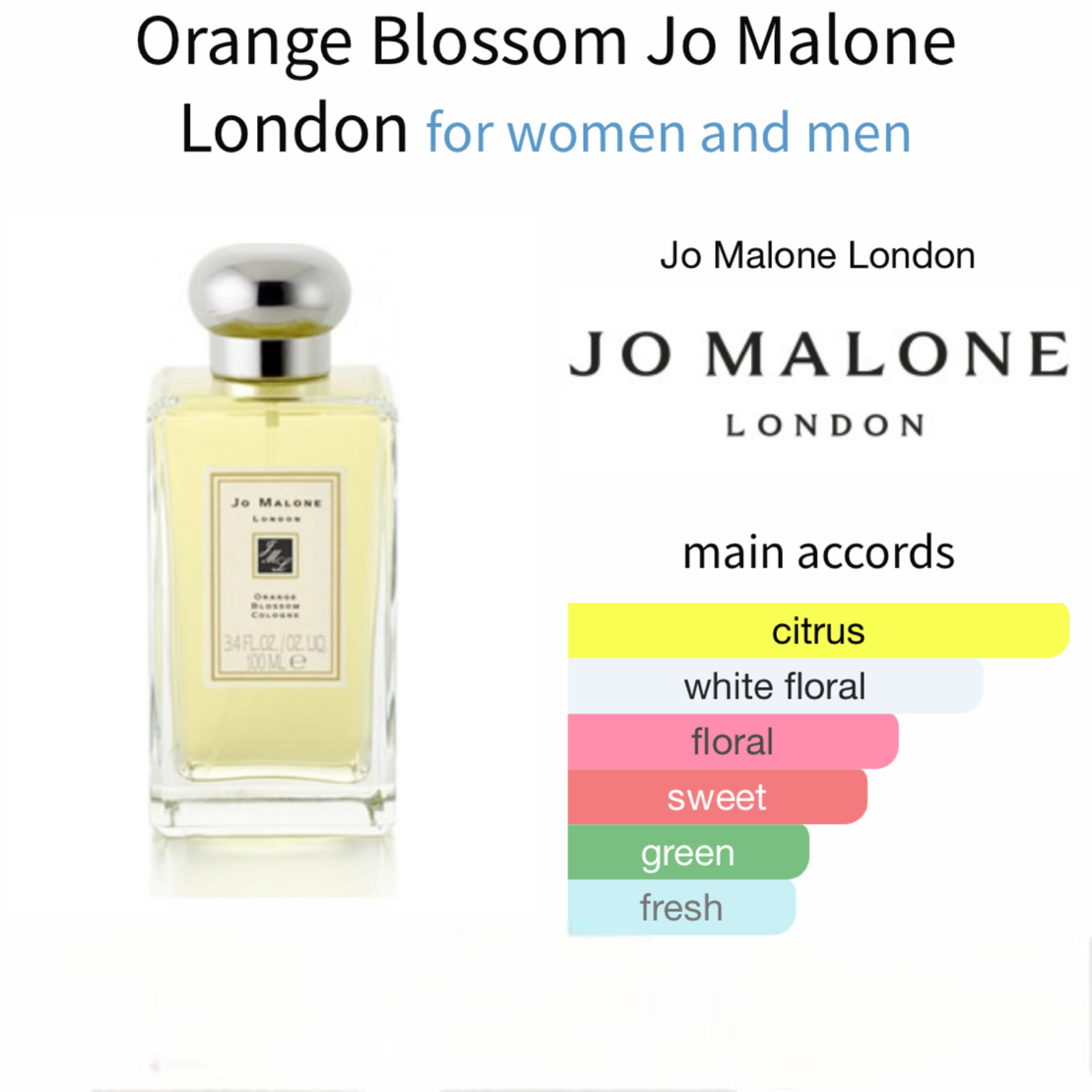 Orange Blossom by Jo Malone London is a Floral fragrance for women and men. Orange Blossom was launched in 2003. The nose behind this fragrance is Jean Claude Delville. Top note is Tangerine Blossom; middle notes are Orange Blossom, Lilac and Water Lily; base notes are iris and Vetiver.